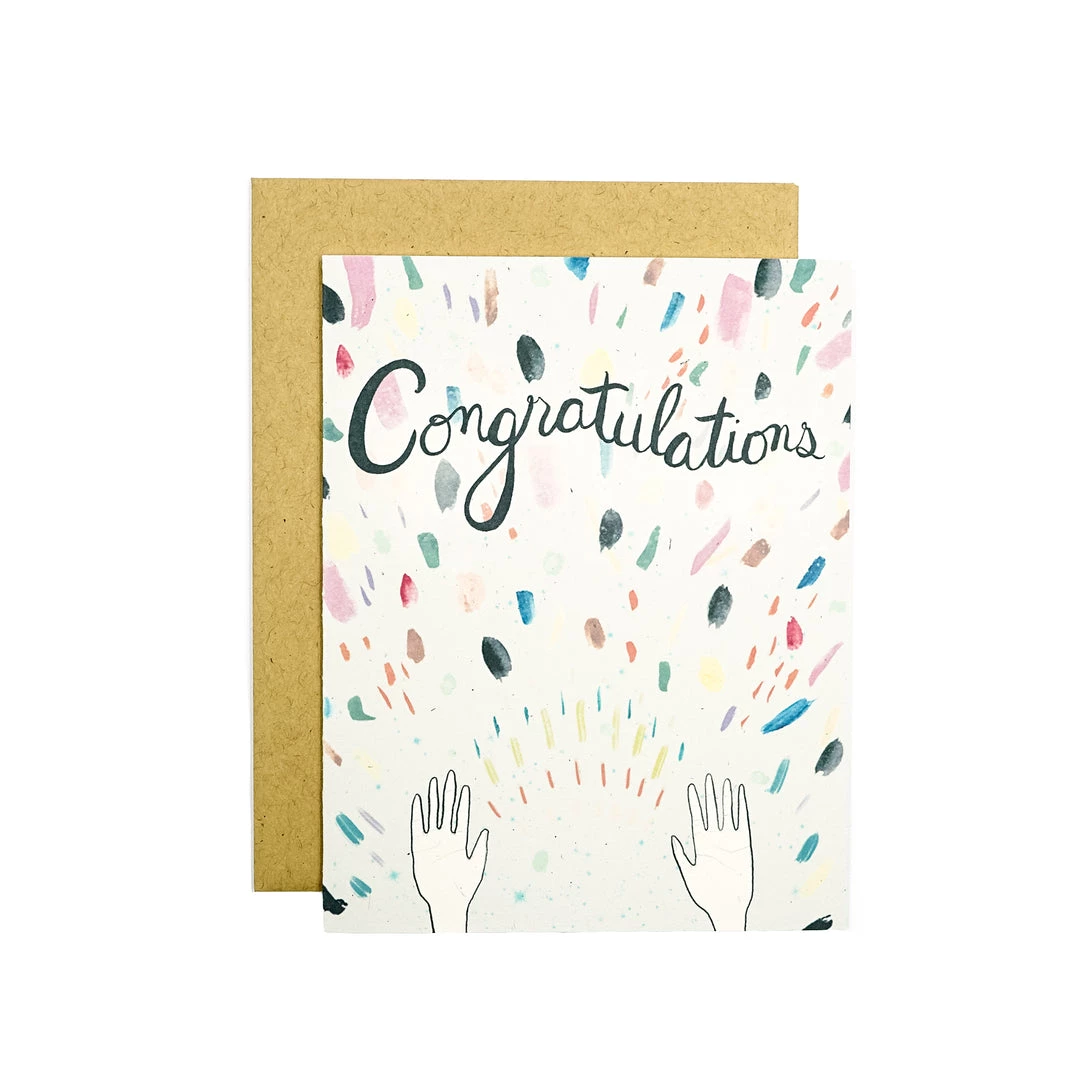 “Congratulations” is a print of an original watercolor artwork depicting a celebration with fun and style. Congratulate a friend, coworker, family or loved one.