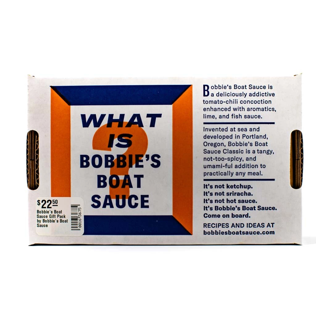 Bobbie’s Boat Sauce Classic is a spicy-but-not-too-spicy concoction you’ll use in place of ketchup or hot sauce, and that you’ll use in places where you might never try ketchup or hot sauce. From eggs and avocado toast to grain bowls to the secret ingredient in your meatloaf, Bobbie’s Boat Sauce Classic sets a course to your mouth on the Sea of Delicious.