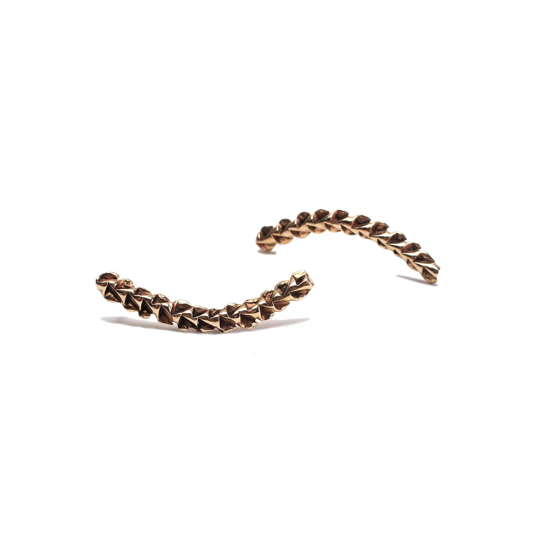 Solid polished bronze with sterling silver posts & backs for those sensitive ears. Approx. 1.25”-1.5” length.