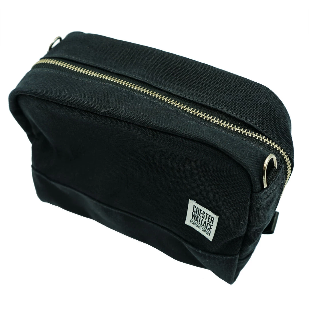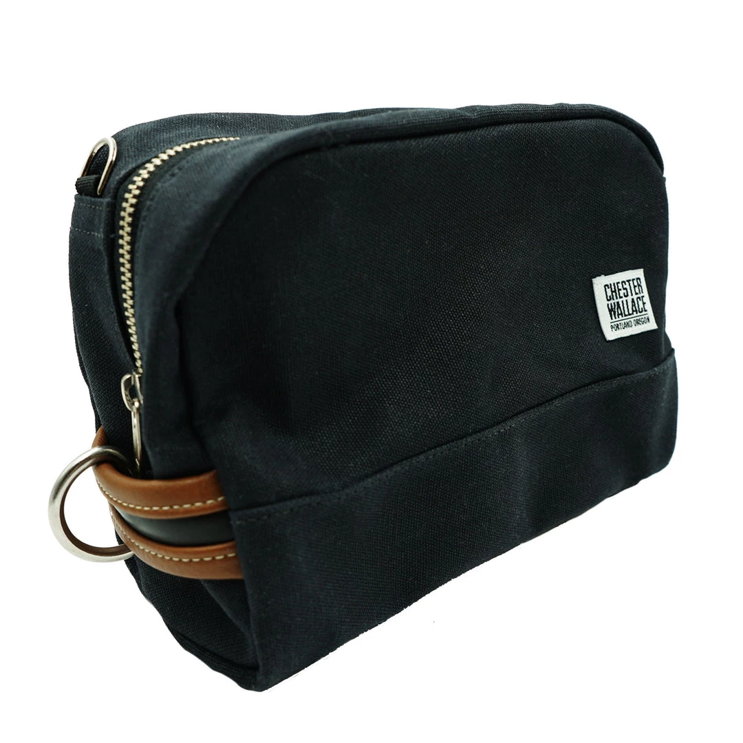 Perfect for toiletries, computer cords and small electronics – an ideal travel companion. Constructed of water repellent #10 waxed canvas.