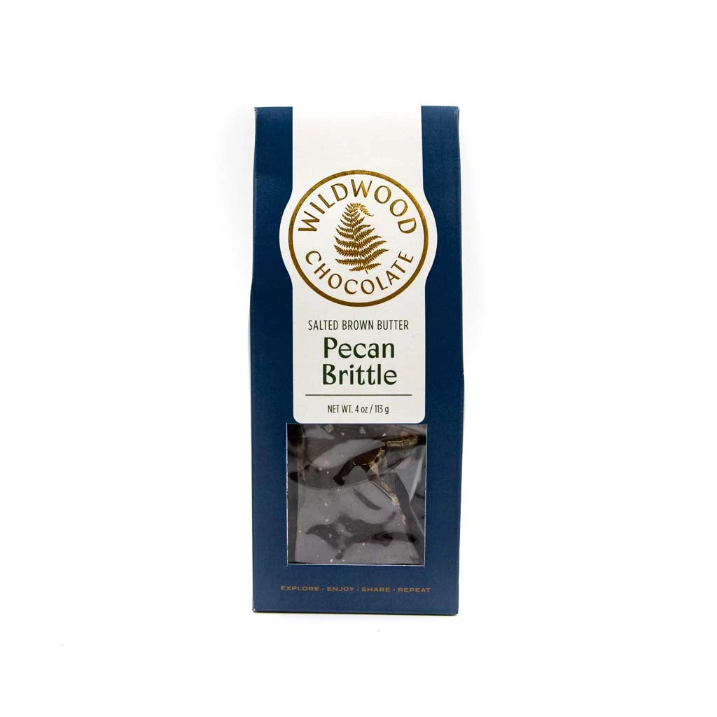 A satisfying crunchy salted brown butter pecan brittle covered in rich 70% dark chocolate.