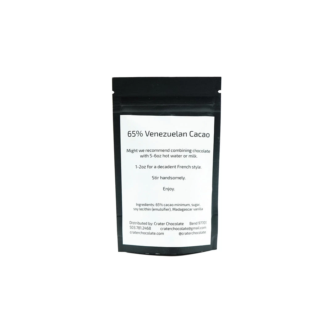 A single serving of 65% Venezuelan drinking chocolate.
