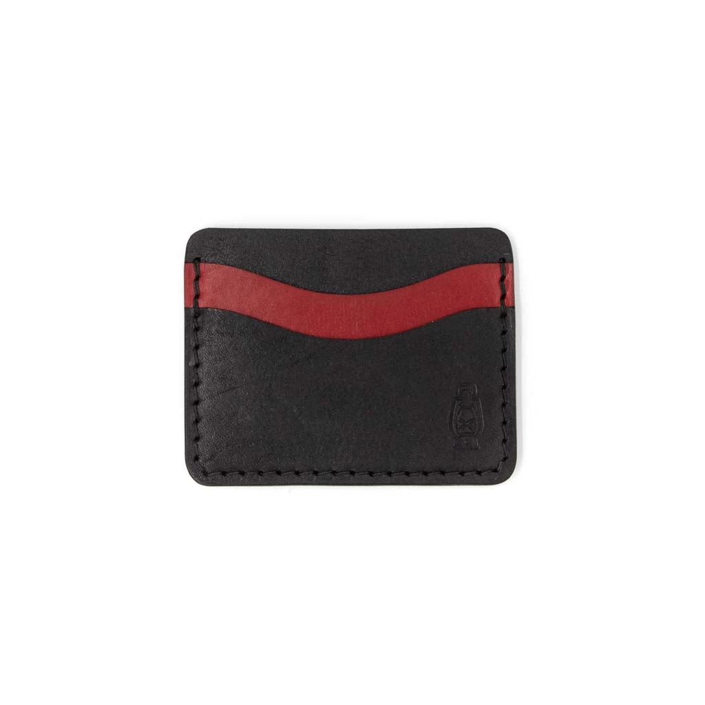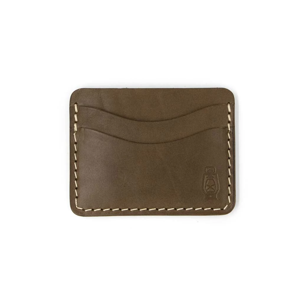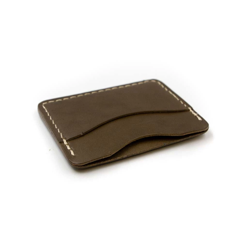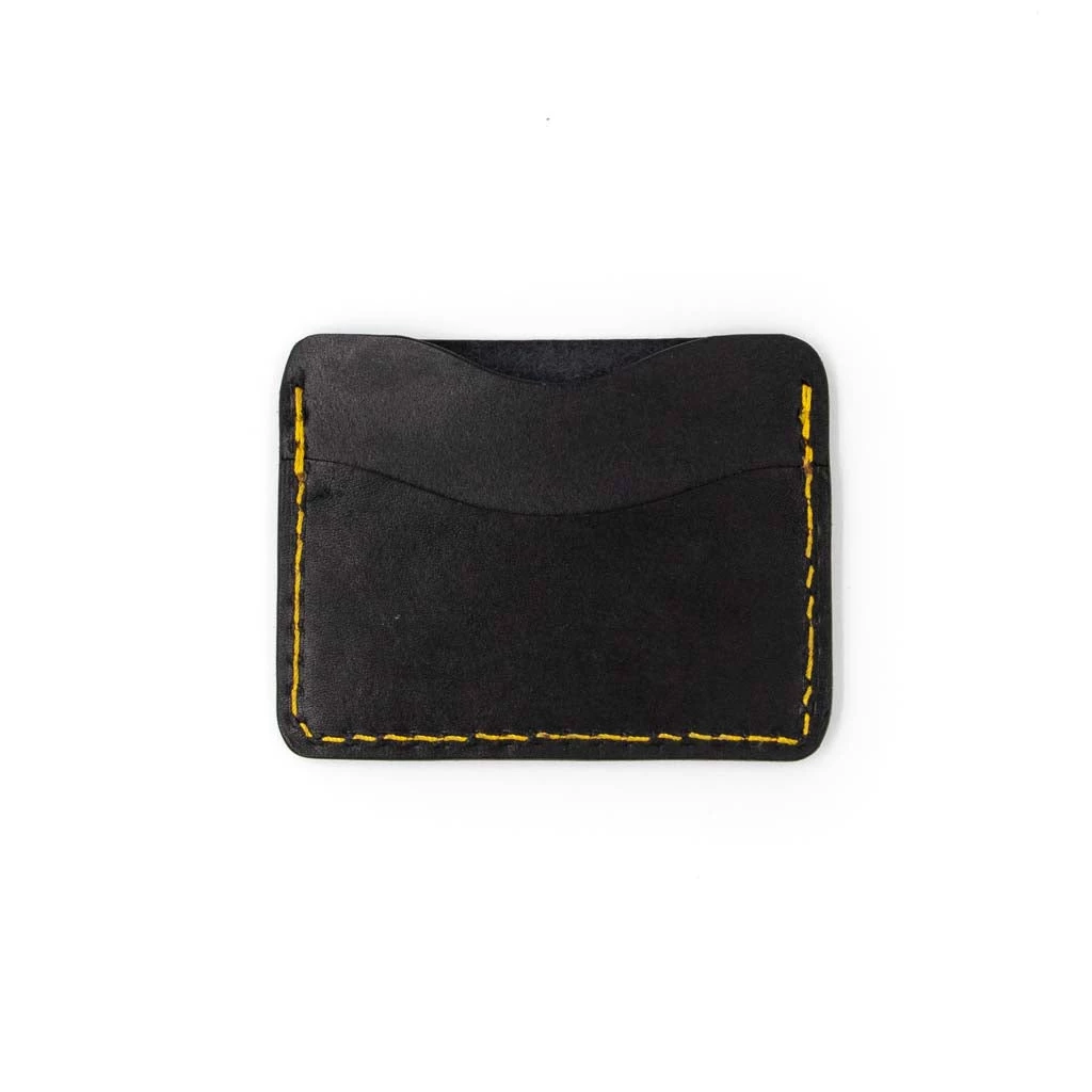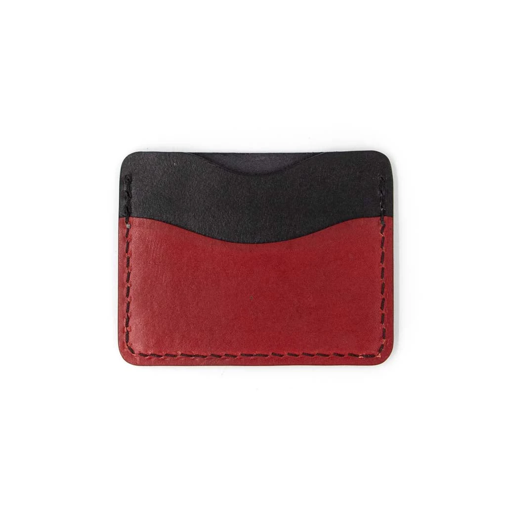 A wallet great for your front pocket. It has 3 card slots, 1 center pocket for folded cash or additional cards. Each slot can fit up to 2-3 cards. Hand-stitched with durable American-made waxed polycord and built to last.