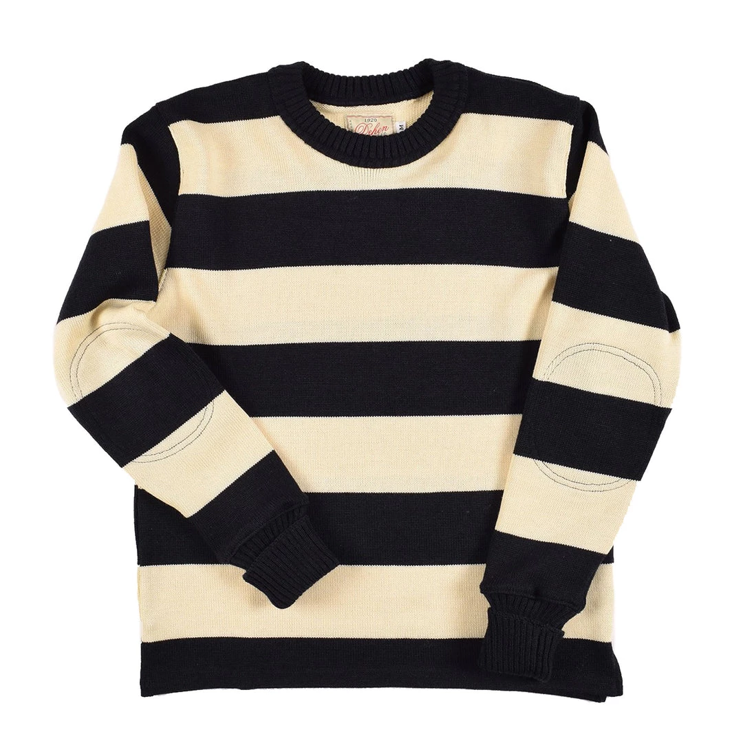 - 2×2 Ribbed crew neck and foldback cuffs (Update from original Striped Naval Crew)