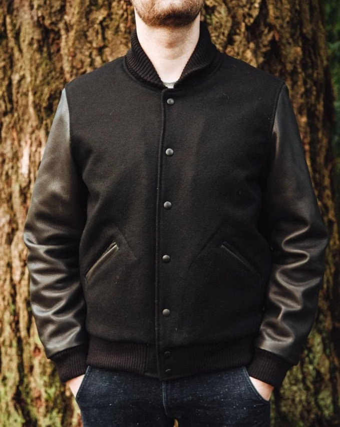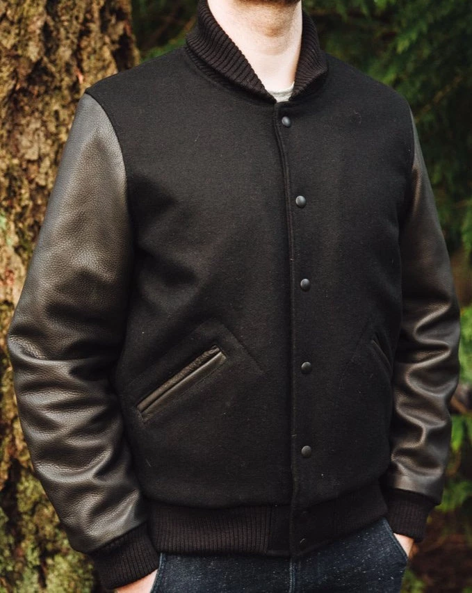 - Premium leather sleeves, pocket welts, and locker loop