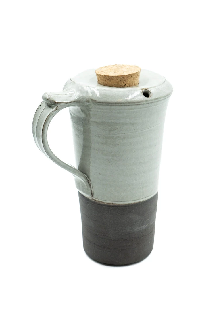 Hand-thrown ceramic travel mug that is made with food safe glaze, hand wash recommended.