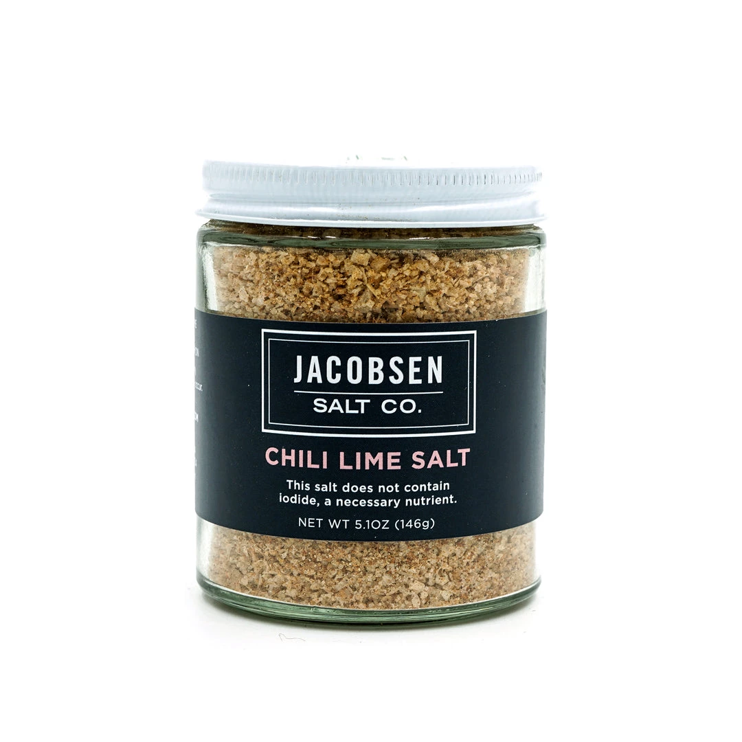 Infused with arbol chilis, lime, cayenne, and paprika, this salt combines savory spices with a touch of tartness. Chili Lime Salt pairs nicely with watermelon, grilled corn, or pork tenderloin. Use this salt for cooking or as a finishing salt. 5.1oz jar.