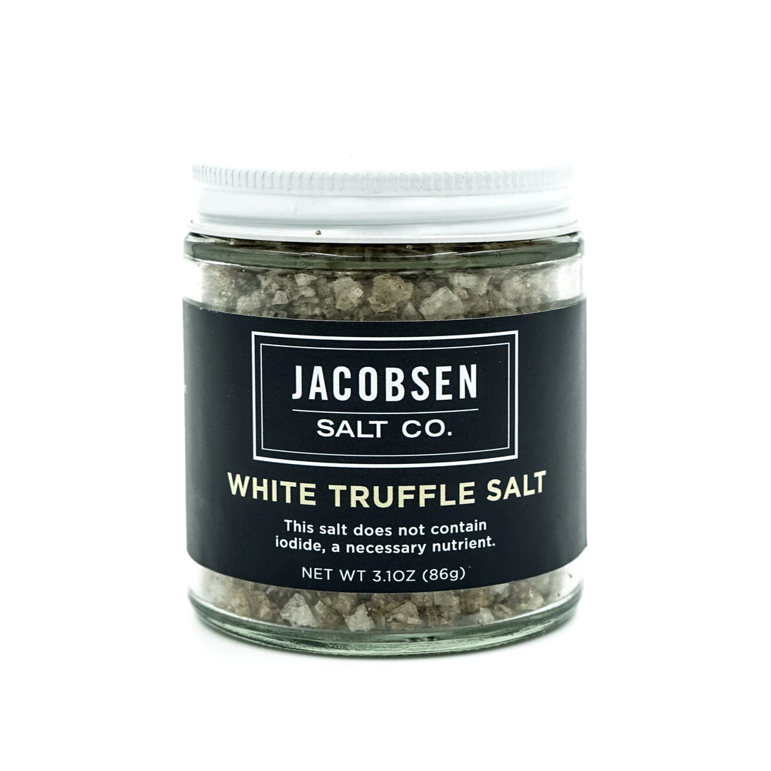 Infused with Italian white truffle and white truffle tincture, this decadent salt adds that powerful aromatic flavor to dishes like seared beef tenderloin, popcorn, or grilled asparagus. This infused salt works best as a finishing salt. 3.1oz jar.