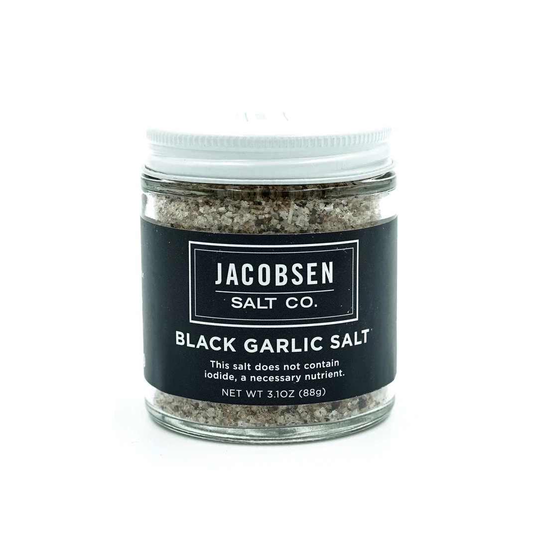 This Black Garlic Salt is a flavor bomb of sweetness matched with savory notes of caramelized garlic. 3.1oz jar.