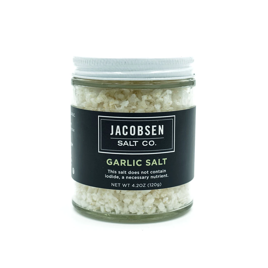 Fresh garlic makes this versatile salt work across a multitude of simple dishes – from warm dinner rolls with butter to crispy fingerling potatoes, grilled and sauteed vegetables, or classic roast chicken. Use this salt for cooking or as a finishing salt. 4.2oz jar.