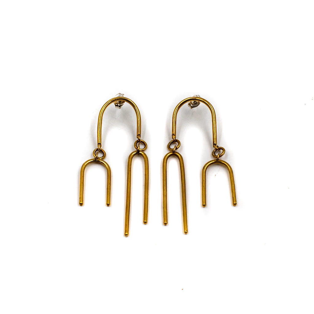 Handmade in jeweler’s brass, with sterling silver ear posts and backs.