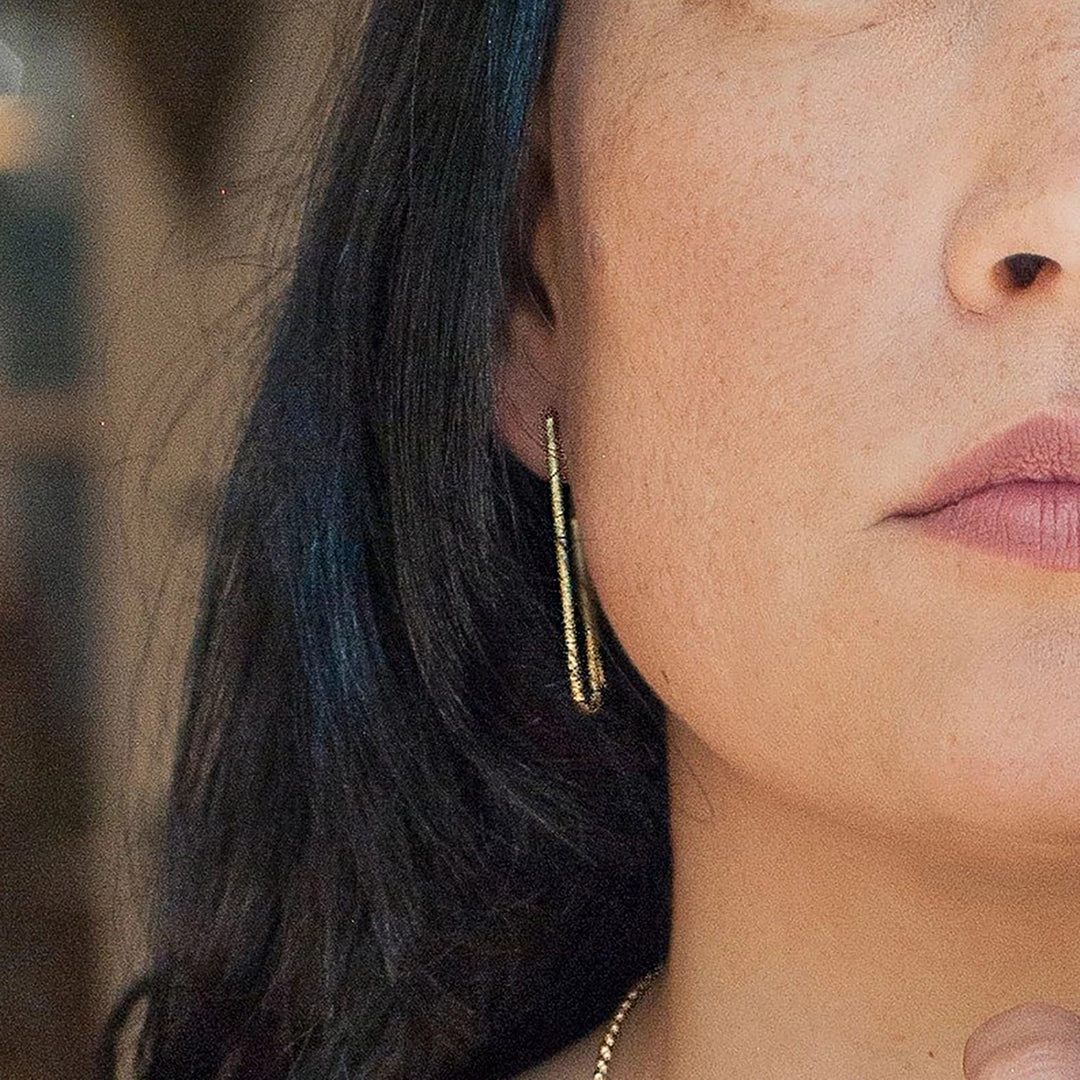 These unique handmade brass earrings give you a sleek minimalist look from the front, but from the side, there’s a pleasant surprise. Some say it looks like a paper clip!