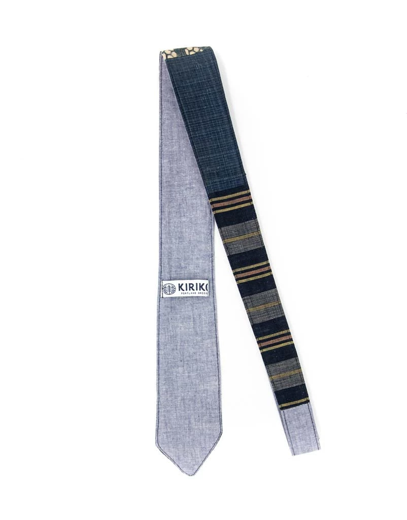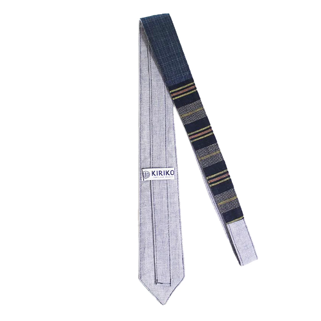 This tie is Kiriko’s homage to Boro. Pieced together from authentic Japanese fabrics. Meant to be worn a little looser around the neck, it has a rustic look and texture, which makes it the perfect casual tie.