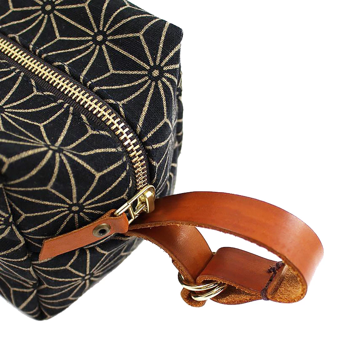 A uniquely-patterned travel bag to carry your toiletries, stationery, or crafting tools. Made with traditional Japanese fabrics for a unique and recognizable look.