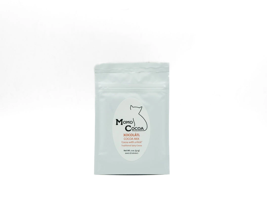 Momo Cocoa’s version of Xocolátl includes premium Dutch processed cocoa, organic cane sugar, organic vanilla powder, cinnamon, allspice, organic cayenne pepper and black pepper.