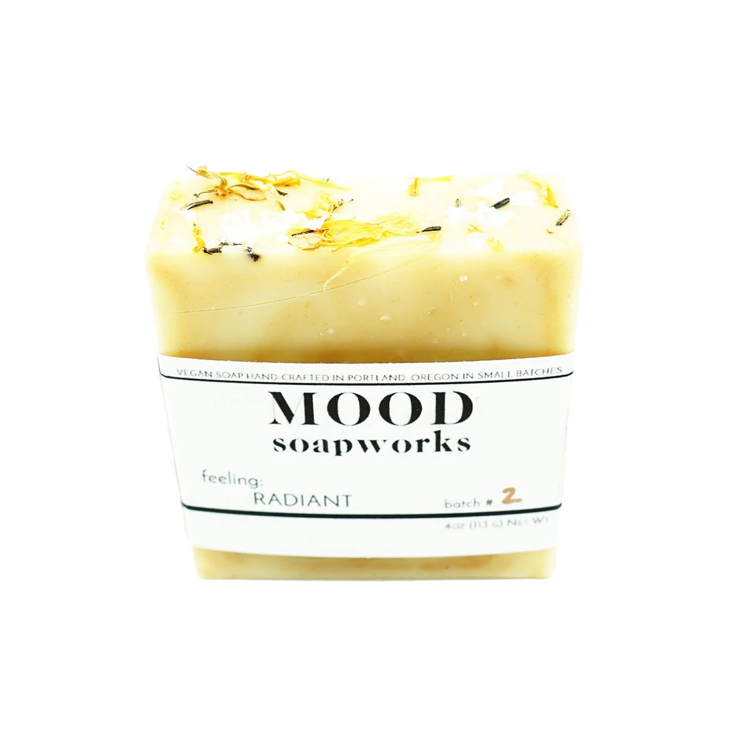 This soap is called radiant for a reason! The stimulating tangerine and rosemary scent is zesty and herbal–a refreshing twist on citrus. Plus, that orange swirl is turmeric, a popular spice for both cooking and traditional medicine. Turmeric’s main active component is curcumin, which has anti-inflammatory and antioxidant properties. It is excellent for oil control, brightening, and increasing the radiance of skin!