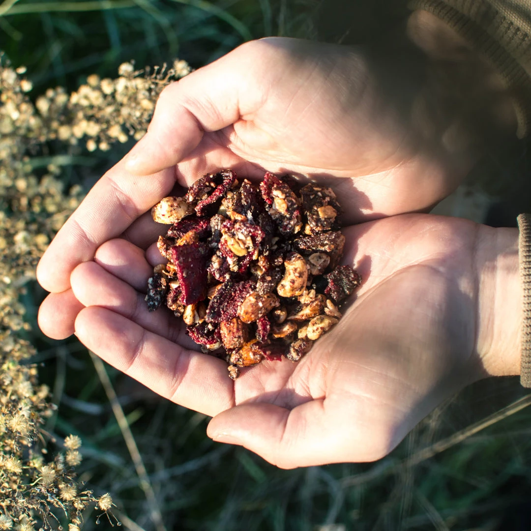 An upgrade to a classic staple. Meadow blends almonds, cashews, crunchy beet chips, apricots and lots of berries into a gourmet blend. Lightly sweetened with honey, dusted with basil, cocoa and coffee. Feeling adventurous? Try it as a cereal or topping on your oatmeal or yoghurt!