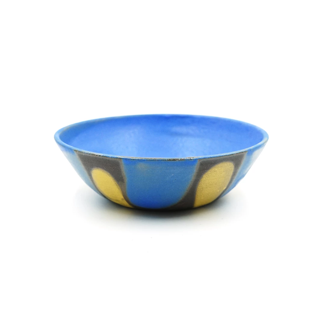 These bowls are glazed in vibrant yellow and blue matte glazes that compliments the rich chocolate clay body. They are perfect for warm or cold dishes!