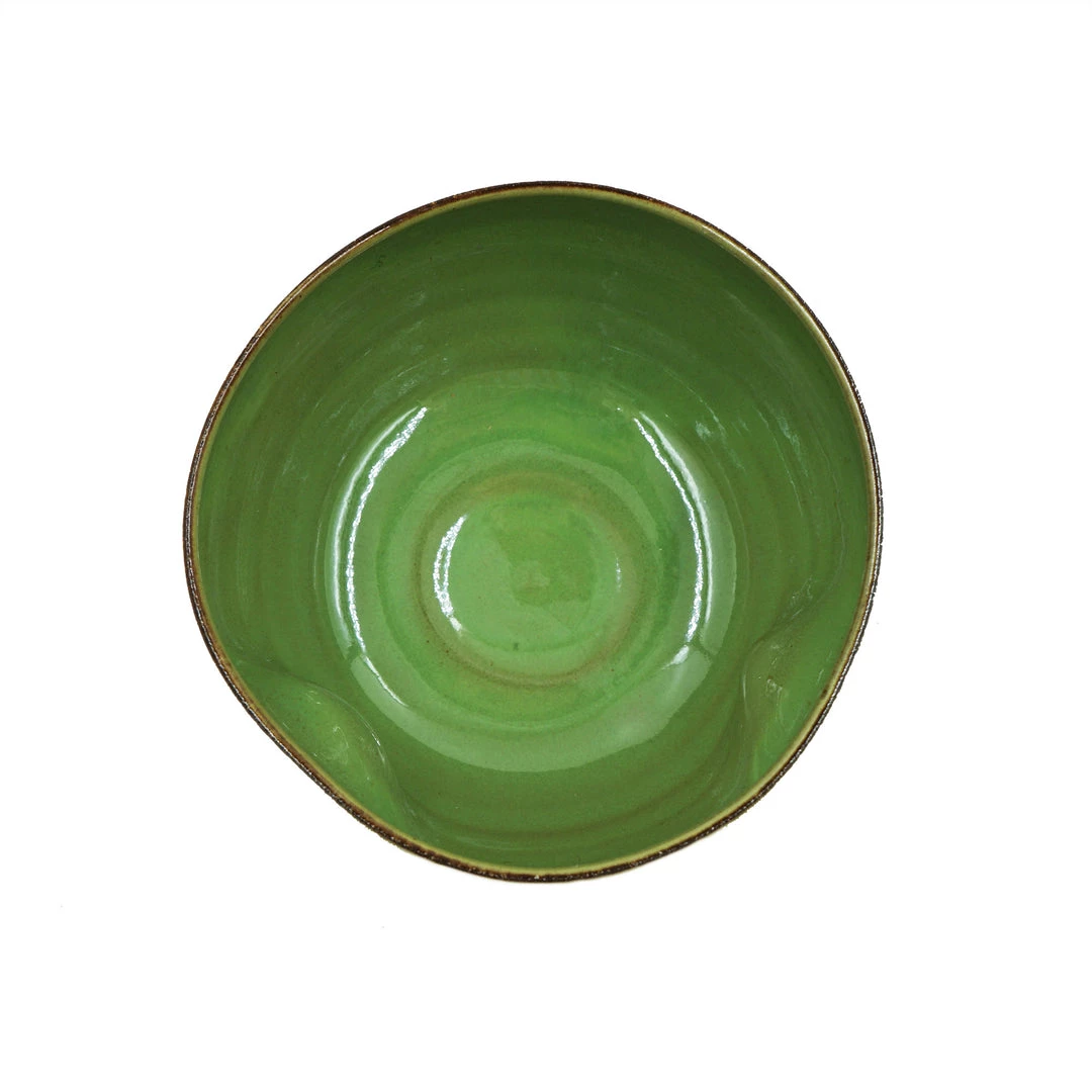 The bowls are glazed in an iridescent and cheerful greenish glaze that compliments the rich chocolate clay body. They perfect for serving warm or cold dishes!