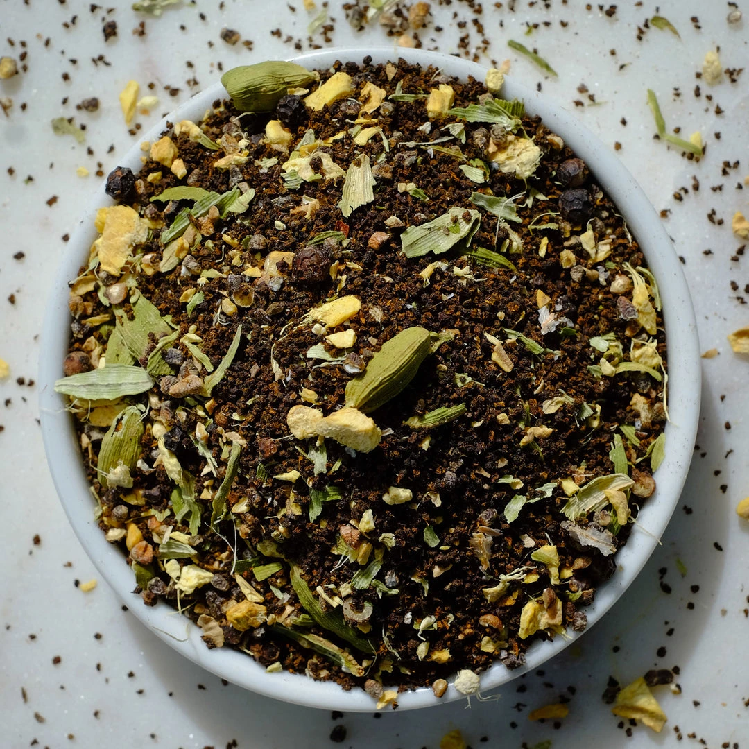 Co-founder of One Stripe, Farah, grew up in a home where chai was brewed twice a day, every Friday evening after mosque, and every single time she visited a family member’s home! This blend is loosely based on her mom’s masala chai, with lots of strong black tea and a hint of cardamom, ginger, and black pepper.