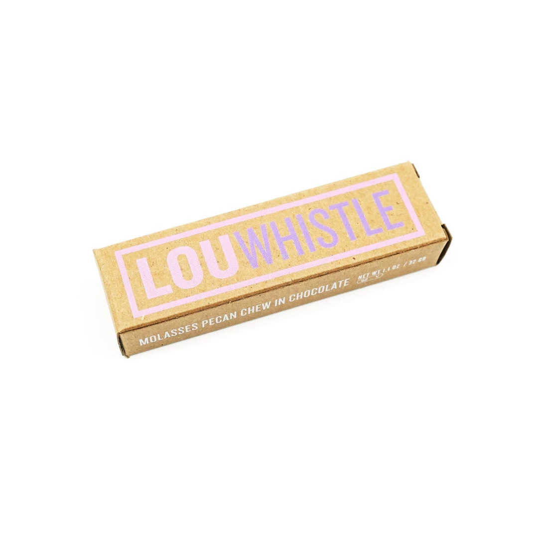 Box includes two little two-bite bars into an adorable box for rich treat now, and another one later, or for sharing with a friend. Lou Whistle loves coffee and chai, bourbon and rum, zinfandel and cider.
