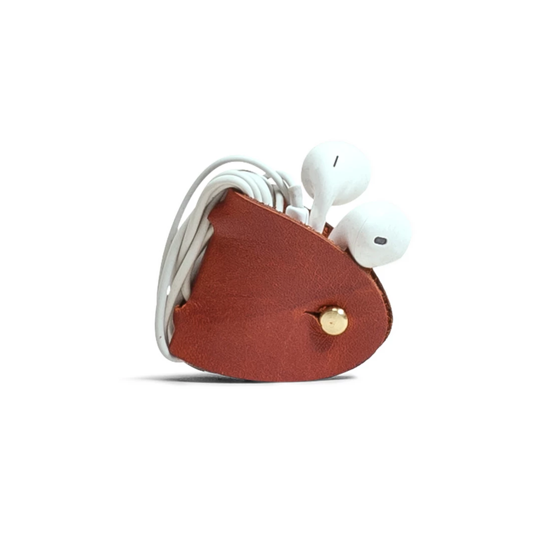 This small folded piece of leather held together with a button is a simple solution to a small, but vexing problem: how to keep headphones, chargers, and cables from getting tangled or going missing.