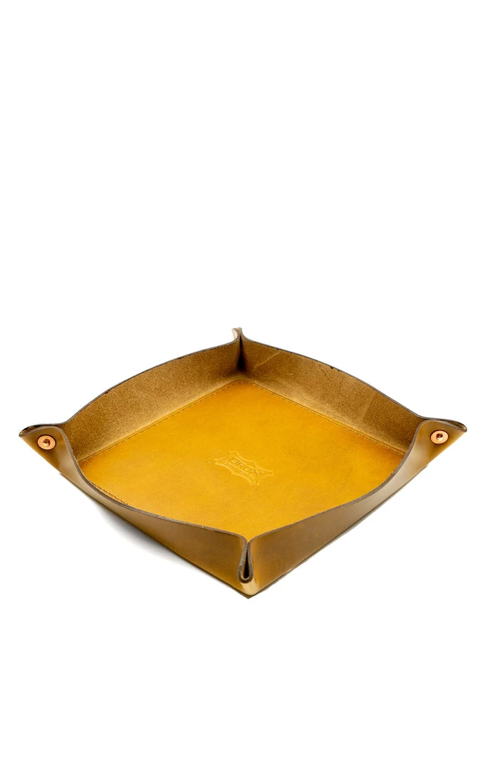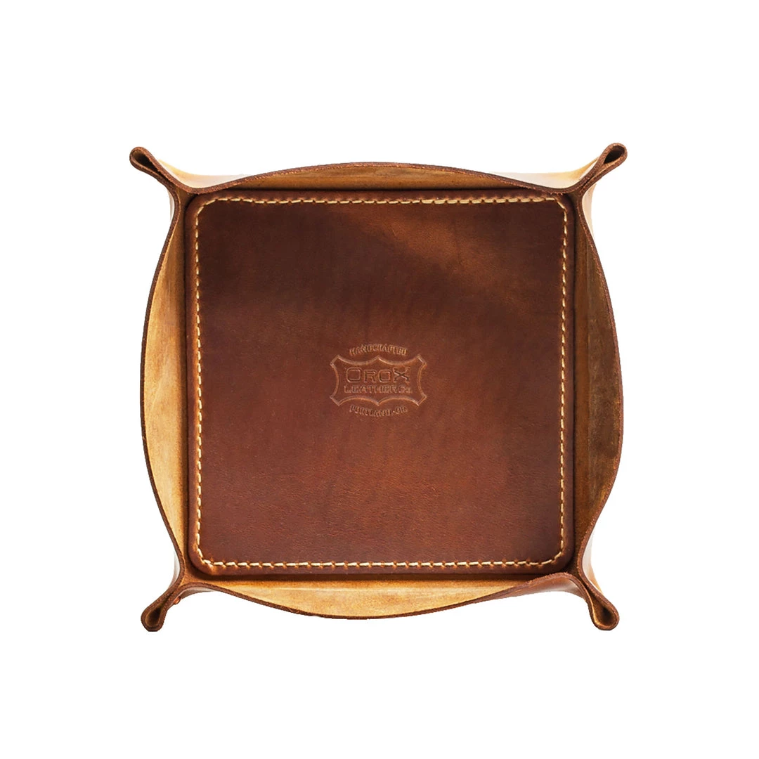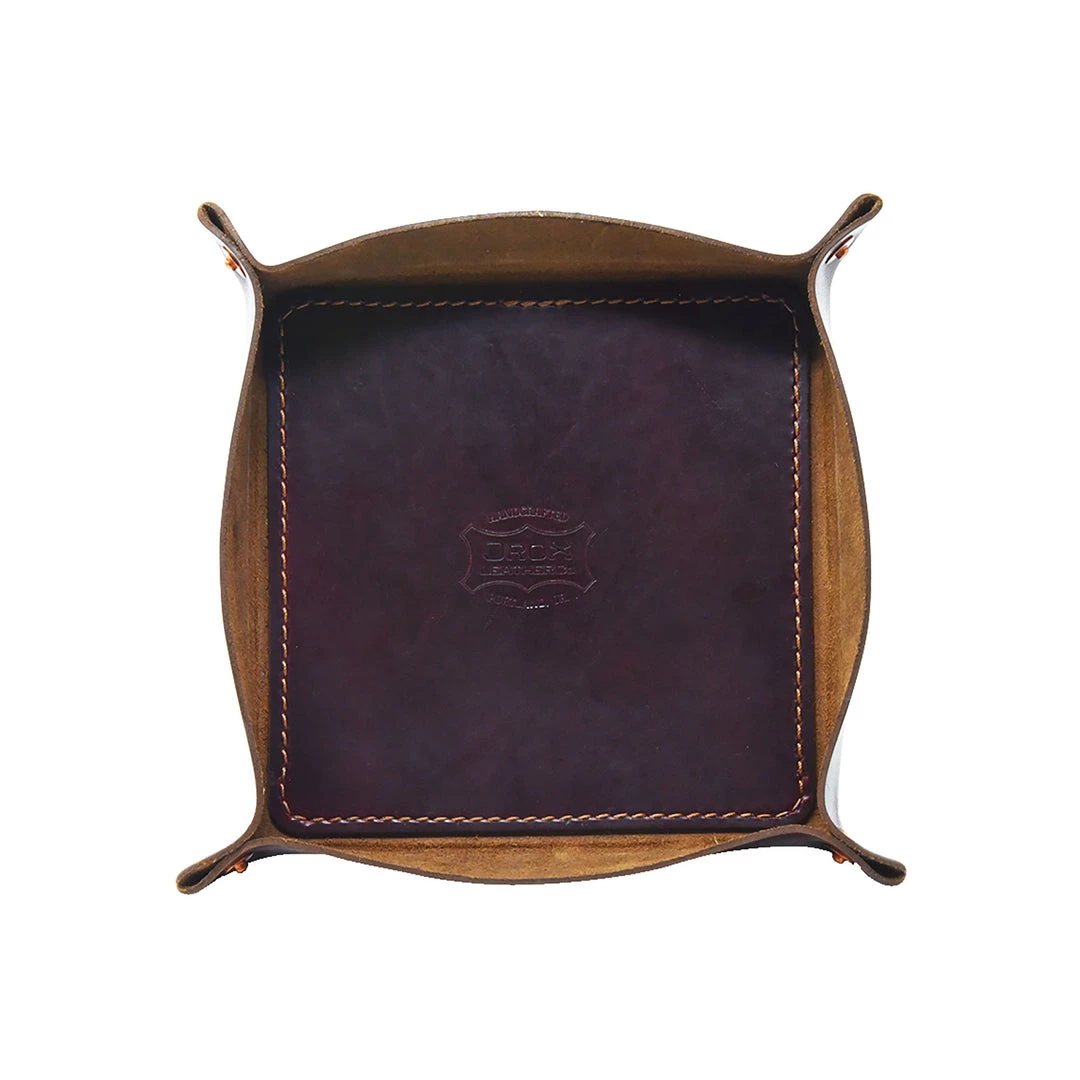 Give your keys and loose change an elegant home. The clean lines of this tray will provide the perfect space with which to place all the little things we carry that can clutter up tables and dressers. And being made from high-quality leather and copper rivets, you’ll do an extra favor to your bedroom or entryway by adding a touch of sophistication. It’s a regal accent piece, handcrafted to last a lifetime.