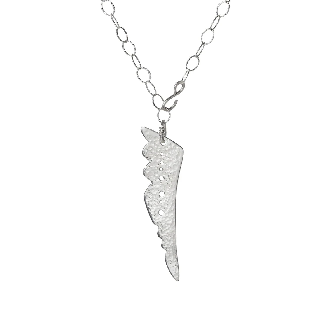 A bold statement piece. The large yet extremely light-weight Phoenix Wing lariat necklace in hammered sterling silver is meant to make a bold statement everyday. Lariat + S hook design allows you to choose the length.