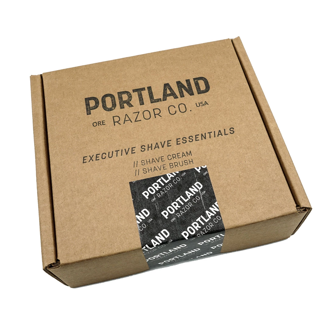 Includes Portland Razor Co.’s ultra-fine vegan bristle Executive Shave Brush with a brush stand for drying, and luxurious Executive Shave Cream in a custom gift box.