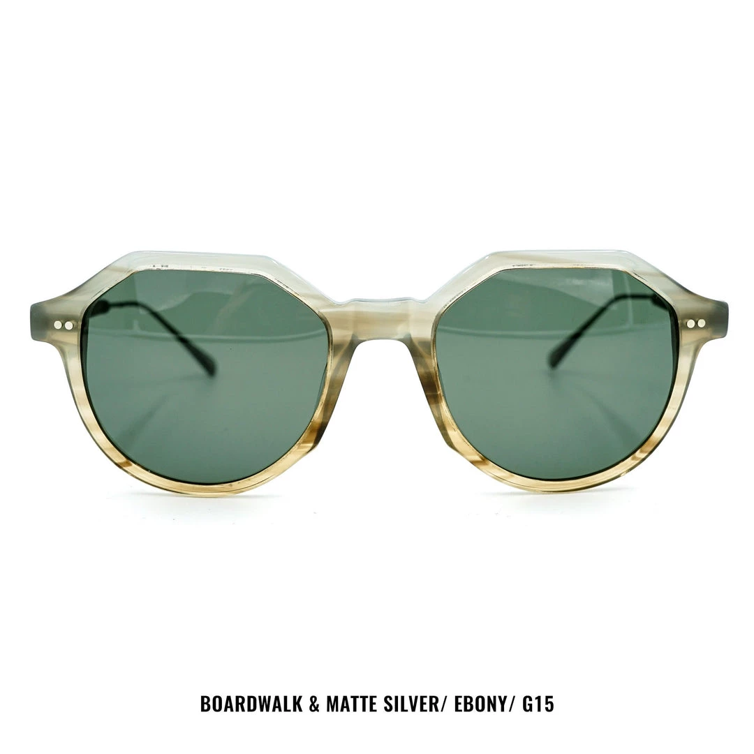 Bold and confident, the Powell’s geometric silhouette and wire temples project a modern and refined aesthetic.