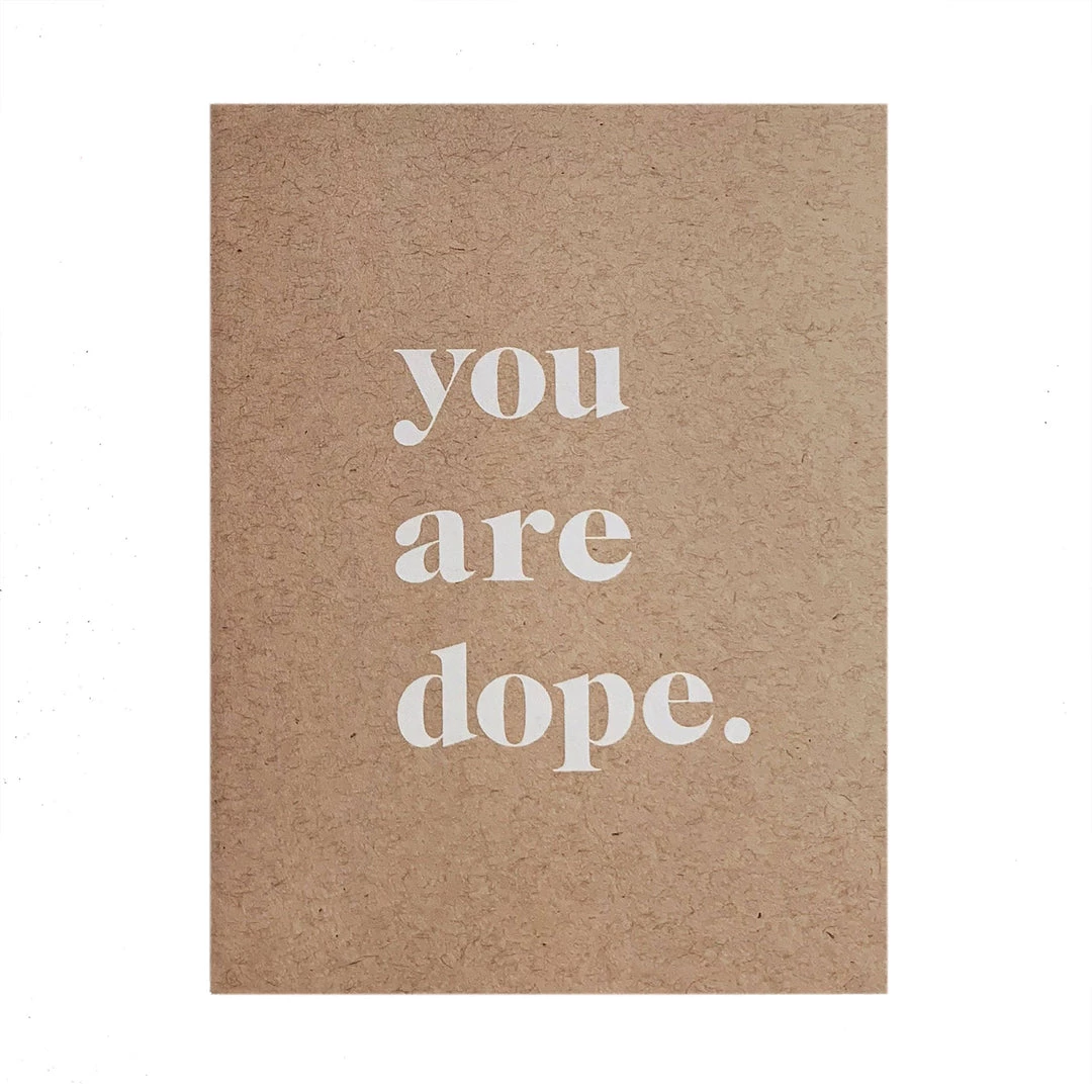 Sometimes you just want to remind someone that they are dope. That they are a great friend, or you respect them handling their business, or maybe their creativity + style stands out like fresh white ink on this unique speckletone paper 😉 Oh, and you’re pretty dope too for lifting others up.