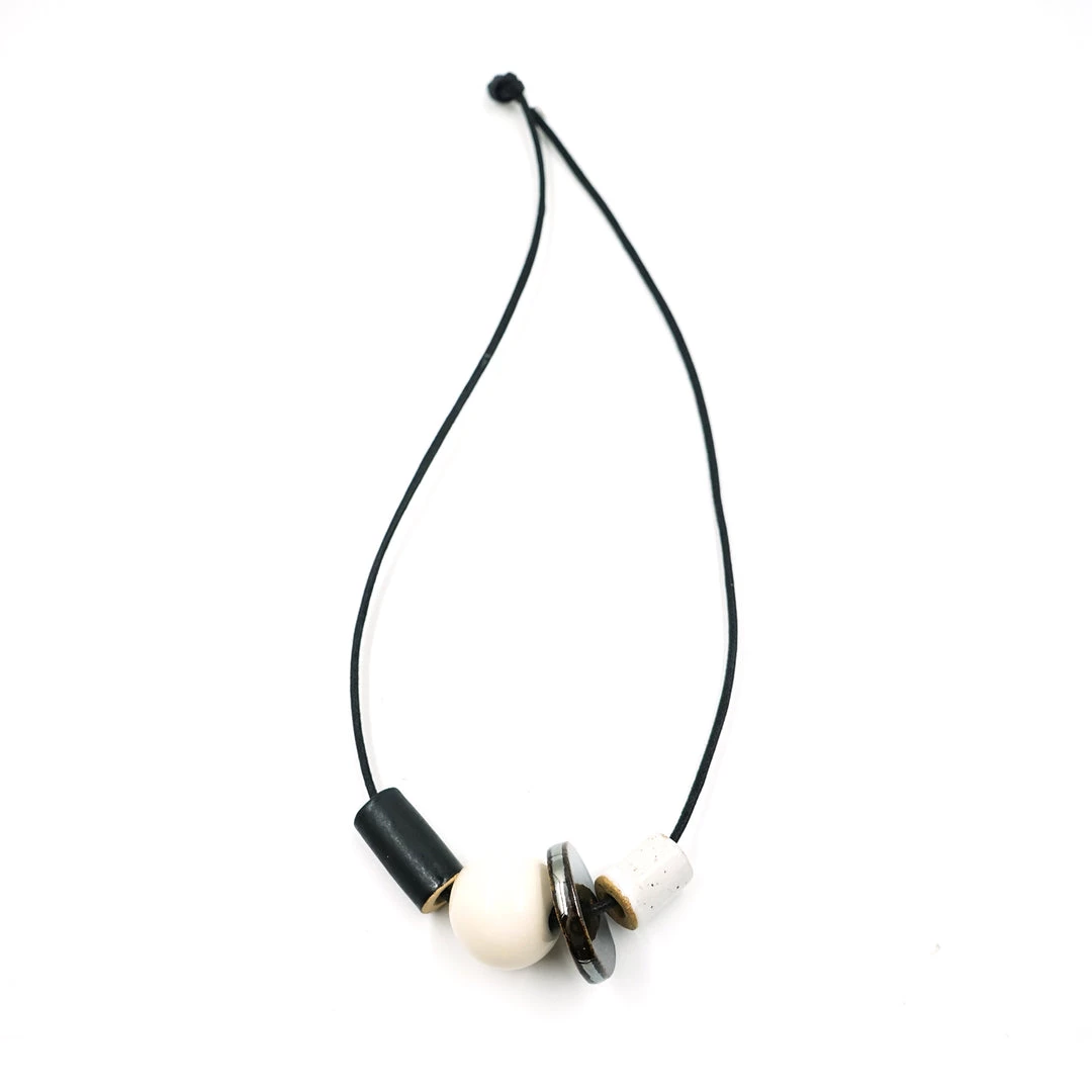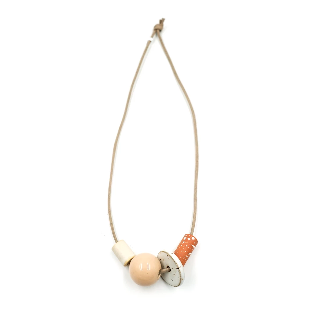 A glossy blush or cream sphere pairs with metallic or white matte glaze, speckle and splatter texture, to create much depth in a minimal assortment.