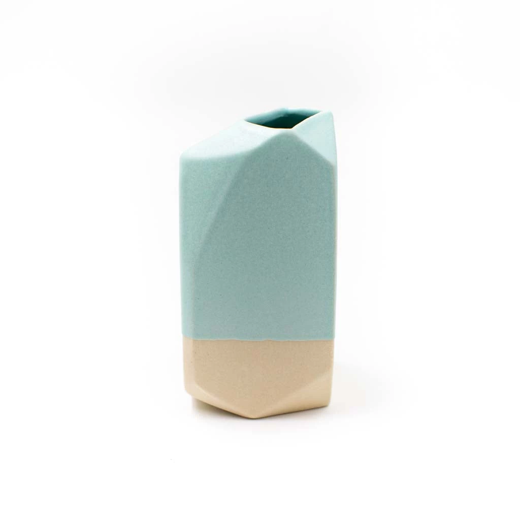 This vase is created from a custom mold and manipulated with hand carving techniques. Each is glazed with Theresa’s own mix: a smooth satin glaze that has a great hand feel.