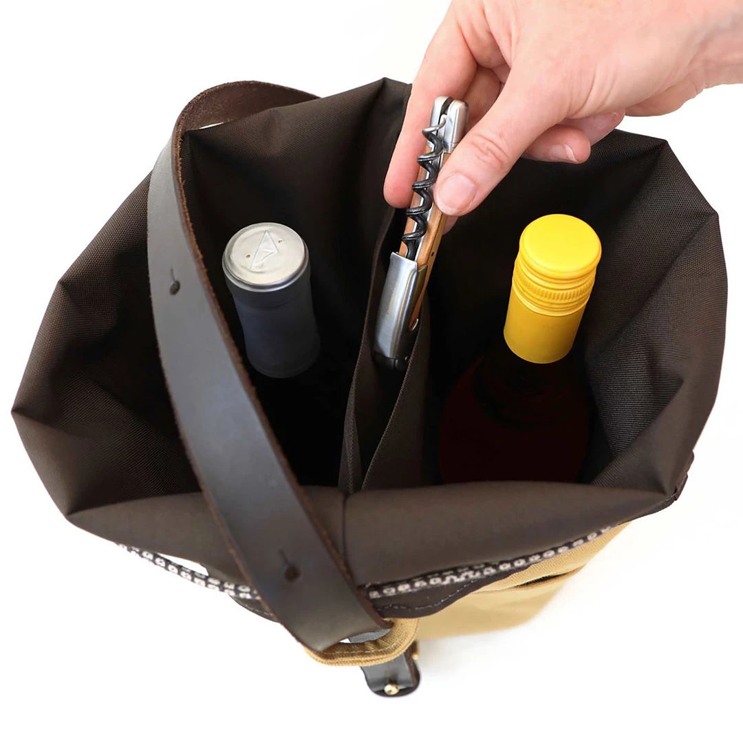 Larkspur, Thread & Whisk’s two bottle wine carrier, is the handsomely understated life of the party. Discreet on the outside, it opens up to reveal your favorite libations. Why two bottles? More to share, of course.
