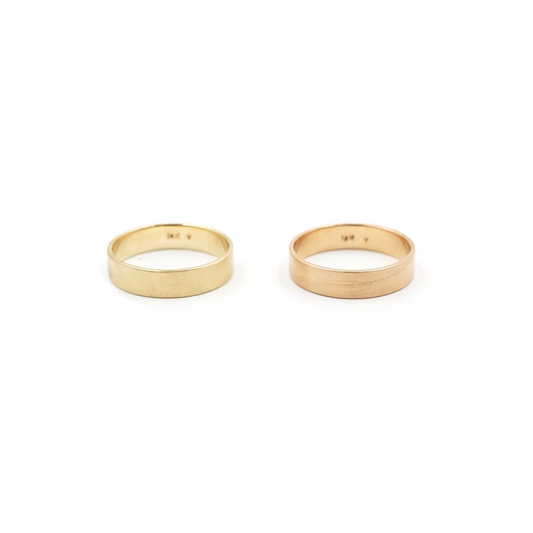 A distinctive modern band. Hand forged in recycled 14K gold with a satin finish.